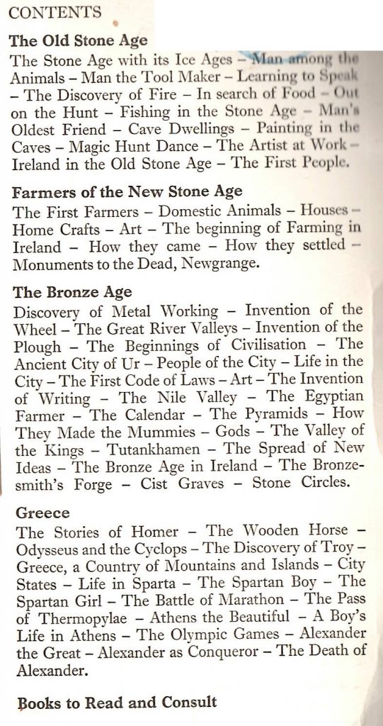 The books included are going through history in a chronological way, which is the approach taken in Classical and Charlotte Mason styles. This is different from the current Irish primary school curriculum. Teachers can pick from a few periods for the children to study during the year. These can be in any chronological order, and depending on the school, may not give an overview of the arc of history. I have not found any Irish primary school books helpful for a chronological overview, thus there are none listed below.